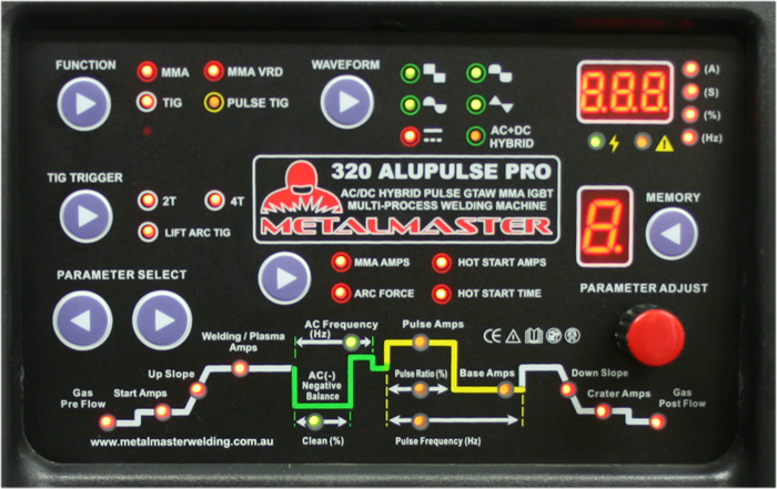 Metalmaster welding machines come standard with a 5 year parts and labour warranty. All IGBT transistors are manufactured by Infineon, chosen for their ability to provide dependable power in the toughest of environments. With the Metalmaster Alupulse 320 Pro you will have one tough inverter AC DC TIG MMA welder ready to attack and conquer any welding job you put to it.