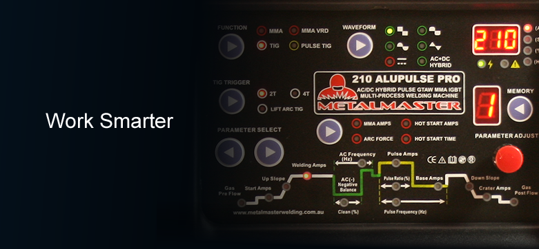 The new range is divided into two groups, the Alupulse Pro 210, Alupulse Pro 250 and Alupulse Pro 315. These machines have high bandwidth AC/DC Tig welding, Pulsing, AC + DC Hybrid Wave, VRD and much more. The variant to the Pro series is the Elite range that features a Pilot Arc Plasma Cutter also. These machines are known as the Elite 215 and Elite 256 that contain a 50 and 60 amp plasma cutter respectively.